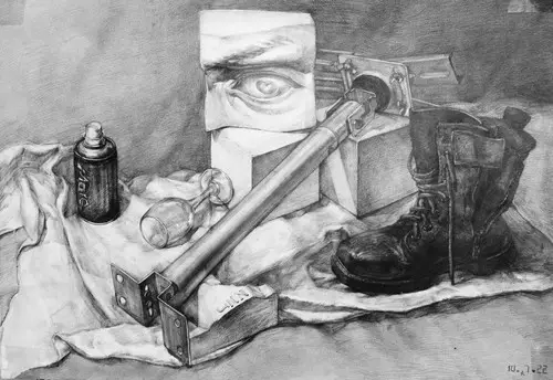 在繪畫寫生中,整體概念自始至終都是一個(gè)核心問題,如何處理整體與局部的關(guān)系,更是必須面對(duì)的首要任務(wù)。當(dāng)然,我們不能把整體概念庸俗化和絕對(duì)化,一味的強(qiáng)調(diào)整體而忽略局部也是錯(cuò)誤的,沒有局部整體無法依存。整體不是一種方法,而是一種觀念。在素描靜物的寫生中,物體組合一般較多,我們必須確立從整體出發(fā)的觀念,整體認(rèn)識(shí)、整體觀察、整體把握。畫蘋果想到陶罐,畫方的想到圓的,畫桌面想到背景。在整體的框架之內(nèi),局部的表現(xiàn)空間十分巨大,沒有局部的深入刻畫,整體將失去存在意義。因此我們完全可以大膽地深入局部,刻畫局部,只要始終遵循整體法則,貫徹主次關(guān)系,局部畫法是大有可為的。