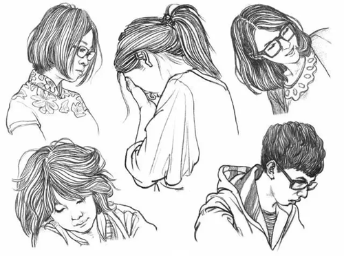 頭部是否生動,并非靠長相,更多是動態(tài)與人物表情的捕捉。動態(tài)是指人物身體的扭曲,包括頭部,人物的表情則是喜怒哀樂。將這些加入你的畫面,必然會使作品生趣盎然。