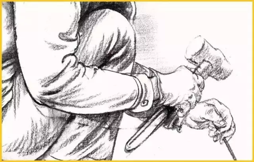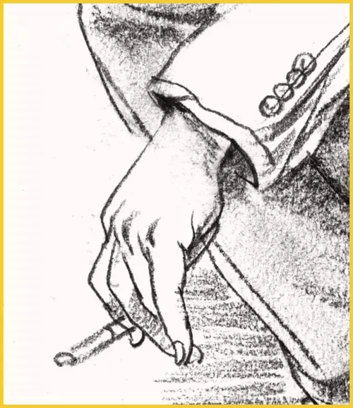 畫(huà)手要把握好胳膊、手腕及手三者間的轉(zhuǎn)折、屈伸的節(jié)奏關(guān)系,勾畫(huà)出手部的特有感覺(jué)。可以頭部作為參照畫(huà)出手臂,通過(guò)與頭部的比較,來(lái)確定手的位置、大小,但要注意手與頭部的呼應(yīng)。
