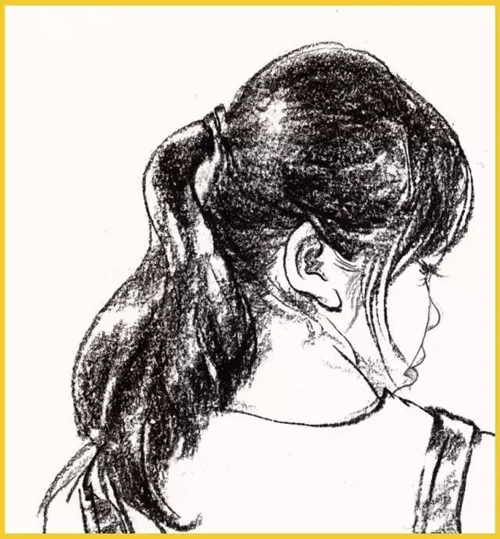 頭發(fā):由于頭發(fā)質(zhì)感柔順,生長(zhǎng)的位置不一樣,頭骨的形狀起伏,所以畫(huà)頭發(fā)要分好組,一組一組的畫(huà)出大面積的轉(zhuǎn)折關(guān)系,用筆要松動(dòng)輕盈。