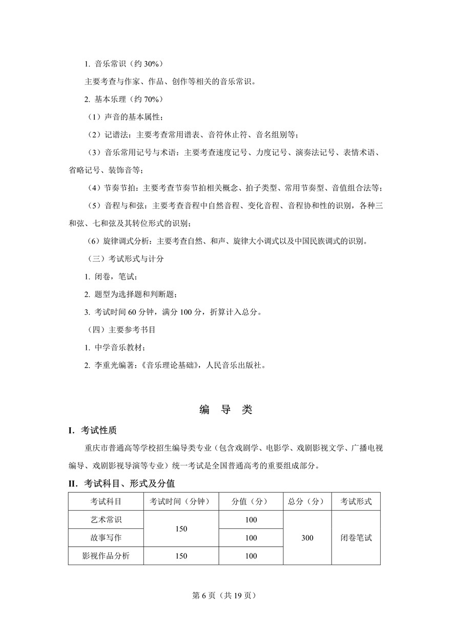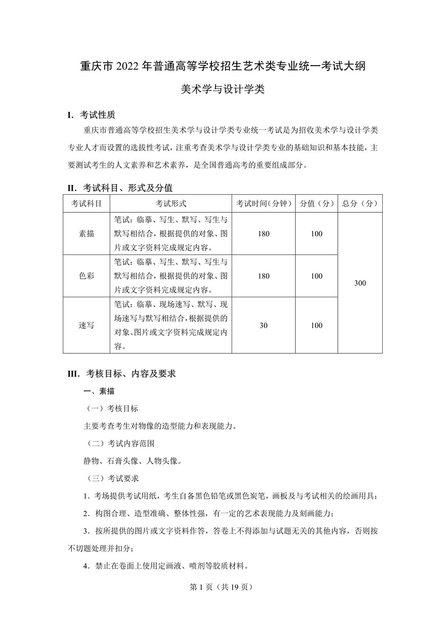 2022年重慶藝術(shù)類專業(yè)統(tǒng)考考試大綱