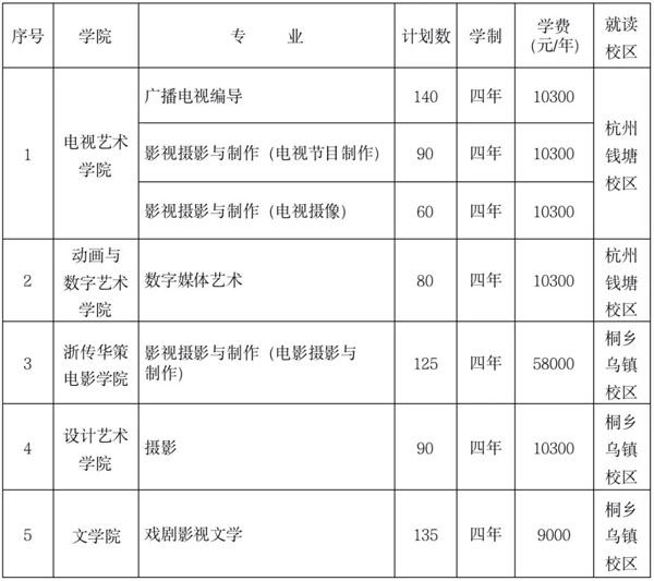 【注】:以上廣電藝術類本科專業(方向)面向全國招生,考生按各省考試院(招生辦)規定參加我校組織的考試。