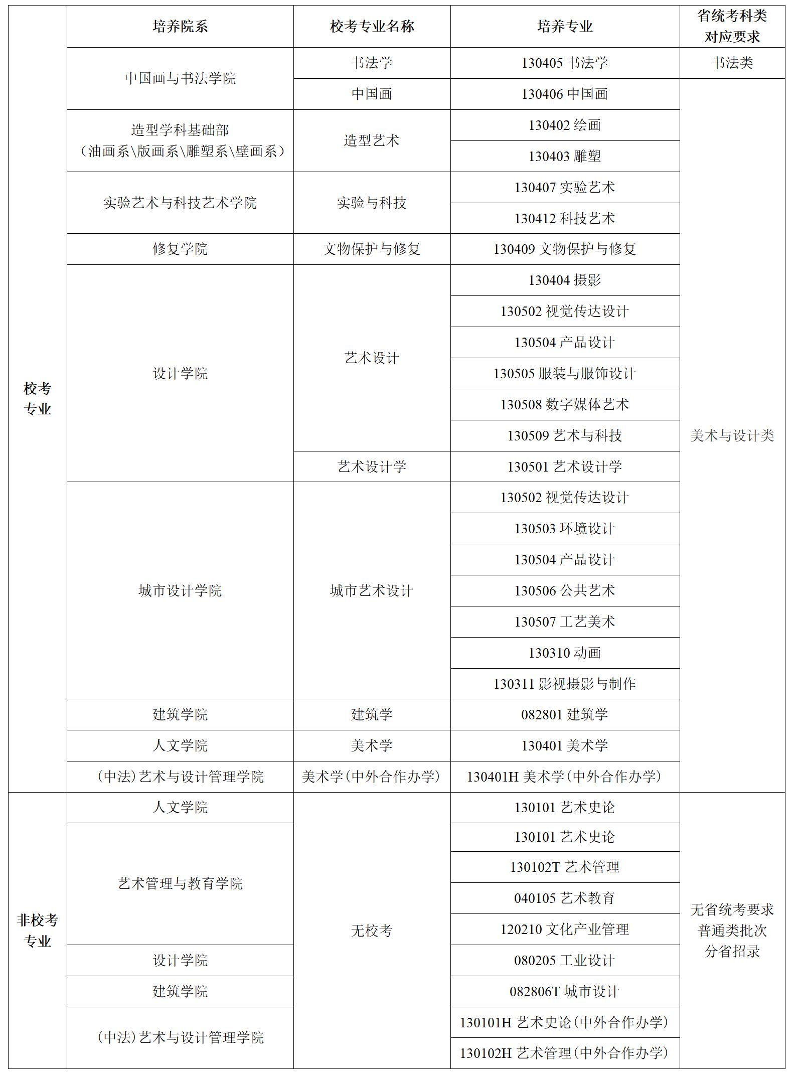各省美術高考分站按照教育部2024年特殊類型招生工作要求,報考我校校考專業的考生須按以下省統考科類對應要求參加省統考。考生在取得對應省統考成績合格(區分本專科合格省市須達本科合格)基礎上參加我校校考。